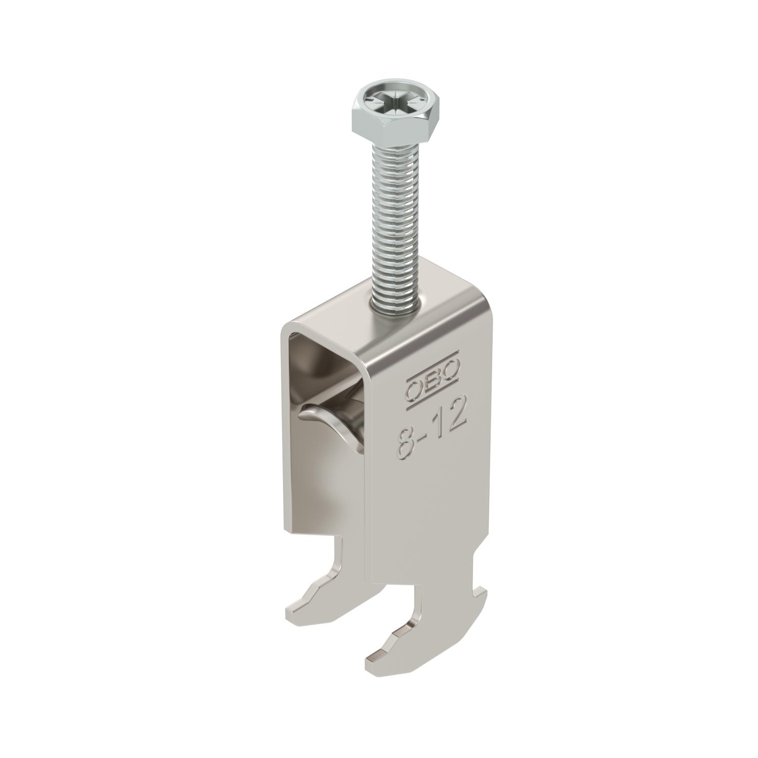 Product descriptionClamp clip with hammerhead foot, metal pressure sleeve with rounded edges to protect the cable. For vertical and horizontal mounting of 2 single cables on a C-profile rail. For a slot width 16–17 mm. With 1-start screw thread on pressure sleeve, universal hexagonal screw head WAF10, with slot and cross recess. Suitable for assembly indoors and outdoors. Multiple cables should be separated by double sleeves. We recommend the use of a counter-sleeve.