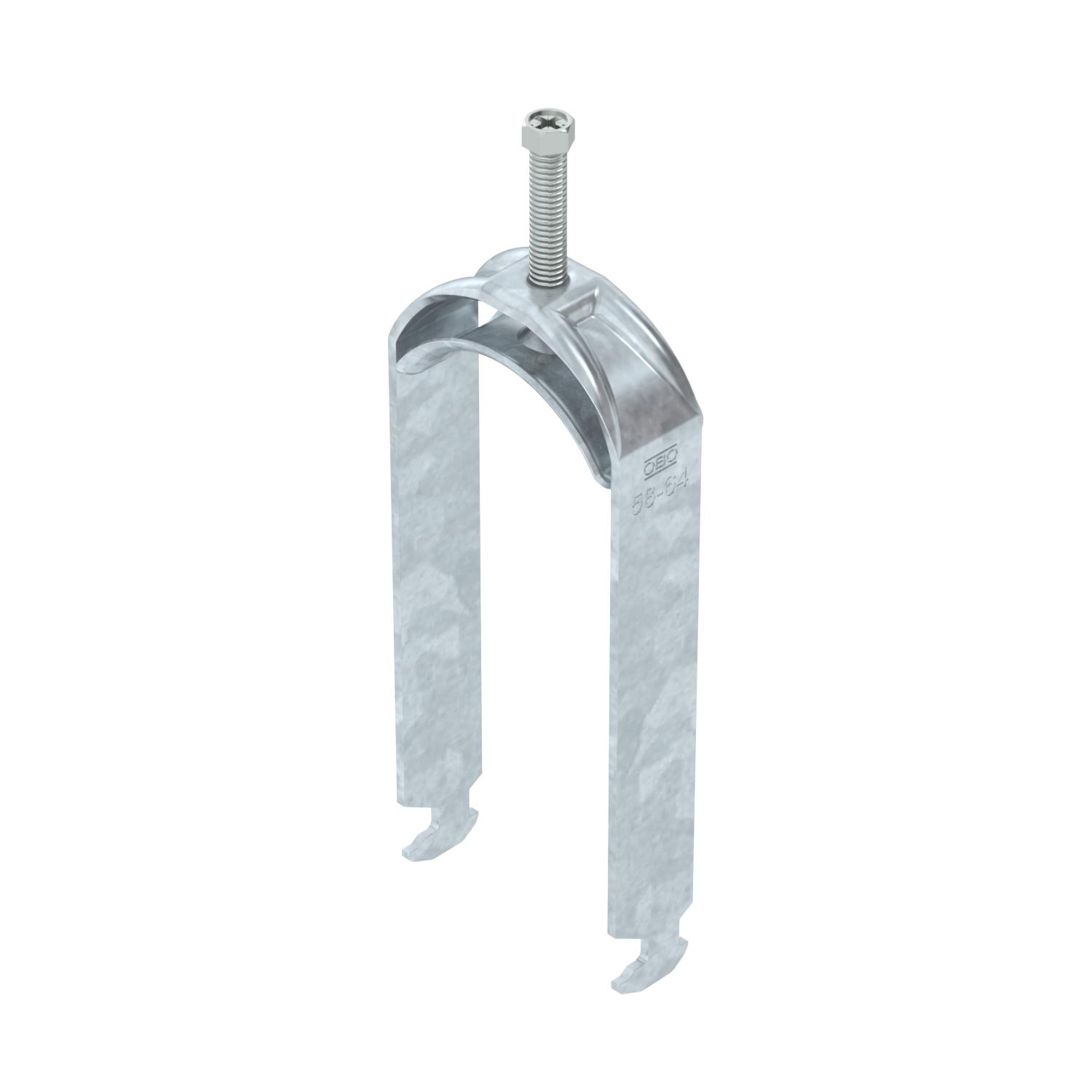 Clamping range D, max. 64 mm Clamping range D, min. 58 mm CO2 Footprint (GWP) Cradle-to-Gate 0,5089 kg CO2e / 1 Piece Dimension 58-64mm Dimension A 25 mm Dimension B 70 mm Dimension C 33 mm Dimension G (mm) M8 Dimension H 172 mm Dimension L 55 mm Dimension t 2,5 mm For pipe diameter, max. 64 mm For pipe diameter, min. 58 mm for rail with slot width (with interval), max. 17 mm for rail with slot width (with interval), min. 16 mm Halogen-free yes Height 172 mm Length 25 mm Length of external dimensions 33 mm Maintain electrical functions yes Material Steel Material addition Steel Material of trough Steel Max. Tightening torque 5 Nm Mounting type Profile rail Number of cables/pipes 2 Plate thickness 2,5 mm Slot width 10 mm Surface Hot-dip galvanised Surface addition hot galvanised Thread M8 Width 70 mm With counter-trough no With metal trough yes With plastic trough no - All types