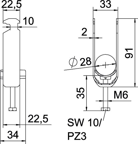 Clamping range D, max. 28 mm Clamping range D, min. 22 mm CO2 Footprint (GWP) Cradle-to-Gate 0,4119 kg CO2e / 1 Piece Dimension 22-28mm Dimension A 22,5 mm Dimension B 33 mm Dimension C 34 mm Dimension G (mm) M6 Dimension H 91 mm Dimension L 47 mm Dimension t 2 mm For pipe diameter, max. 28 mm For pipe diameter, min. 22 mm for rail with slot width (with interval), max. 17 mm for rail with slot width (with interval), min. 16 mm Halogen-free yes Height 91 mm Length 22,5 mm Length of external dimensions 34 mm Material Stainless steel 1.4301 Material addition Rustproof steel Material of trough Plastic Material quality of trough Polypropylene Max. Tightening torque 3 Nm Mounting type Profile rail Number of cables/pipes 2 Plate thickness 2 mm Slot width 10 mm Surface Bright, treated Surface addition Untreated Thread M6 Width 33 mm With counter-trough no With plastic trough yes - All types