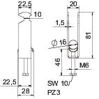 Clamping range D, max. 16 mm Clamping range D, min. 12 mm CO2 Footprint (GWP) Cradle-to-Gate 0,1388 kg CO2e / 1 Piece Dimension 12-16mm Dimension A 22,5 mm Dimension B 20 mm Dimension C 28 mm Dimension G (mm) M6 Dimension H 81 mm Dimension L 46 mm Dimension t 1,5 mm For pipe diameter, max. 16 mm For pipe diameter, min. 12 mm for rail with slot width (with interval), max. 17 mm for rail with slot width (with interval), min. 16 mm Halogen-free yes Height 81 mm Length 22,5 mm Length of external dimensions 28 mm Maintain electrical functions yes Material Steel Material addition Steel Material of trough Steel Max. Tightening torque 3 Nm Mounting type Profile rail Number of cables/pipes 3 Plate thickness 1,5 mm Slot width 10 mm Surface Hot-dip galvanised Surface addition hot galvanised Thread M8 Width 20 mm With counter-trough no With metal trough yes With plastic trough no - All types