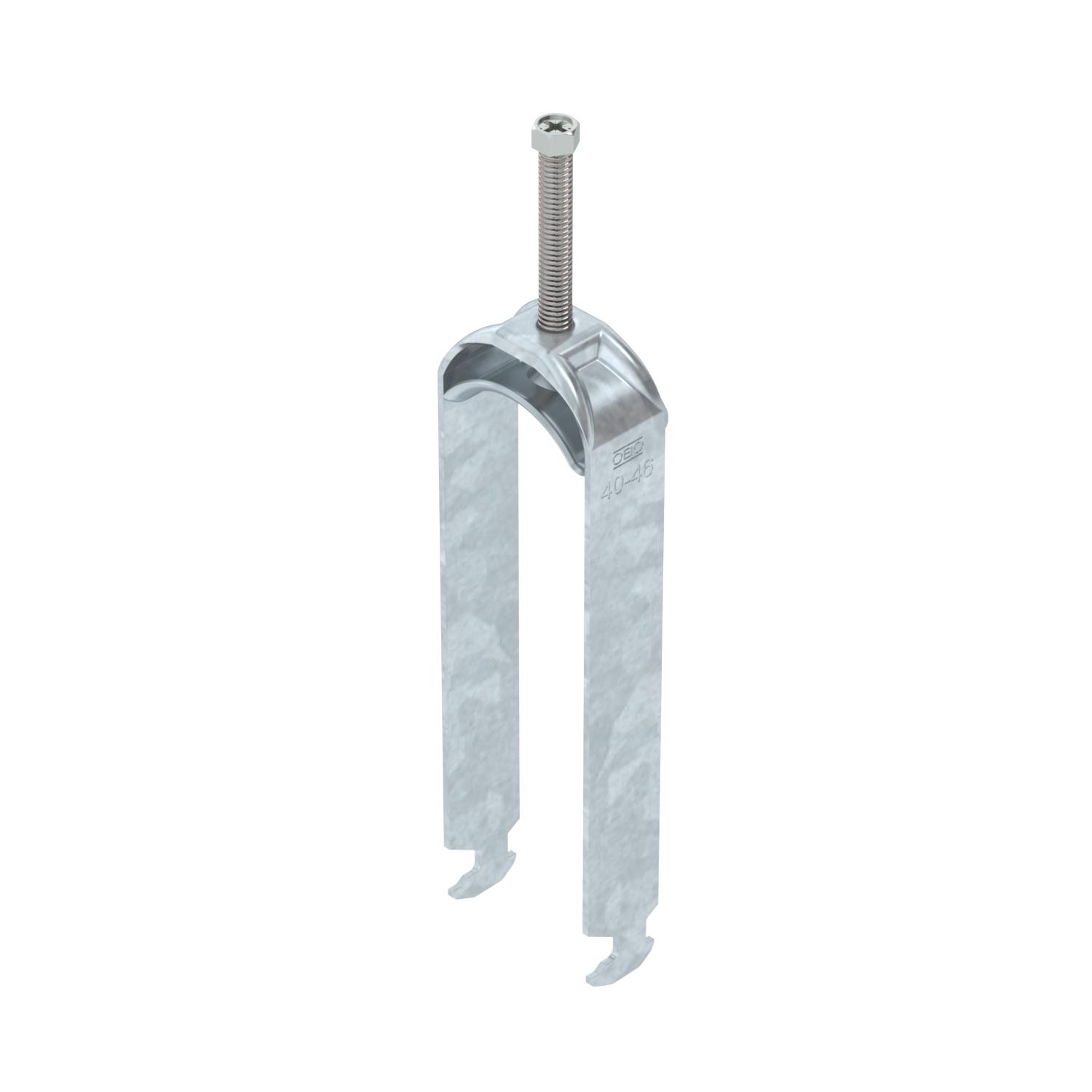 Clamping range D, max. 46 mm Clamping range D, min. 40 mm CO2 Footprint (GWP) Cradle-to-Gate 0,5117 kg CO2e / 1 Piece Dimension 40-46mm Dimension A 25 mm Dimension B 51 mm Dimension C 33 mm Dimension G (mm) M8 Dimension H 182 mm Dimension L 70 mm Dimension t 2 mm For pipe diameter, max. 46 mm For pipe diameter, min. 40 mm for rail with slot width (with interval), max. 17 mm for rail with slot width (with interval), min. 16 mm Halogen-free yes Height 182 mm Length 25 mm Length of external dimensions 33 mm Maintain electrical functions yes Material Steel Material addition Steel Material of trough Steel Max. Tightening torque 5 Nm Mounting type Profile rail Number of cables/pipes 3 Plate thickness 2 mm Slot width 10 mm Surface Hot-dip galvanised Surface addition hot galvanised Thread M8 Width 51 mm With counter-trough no With metal trough yes With plastic trough no - All types