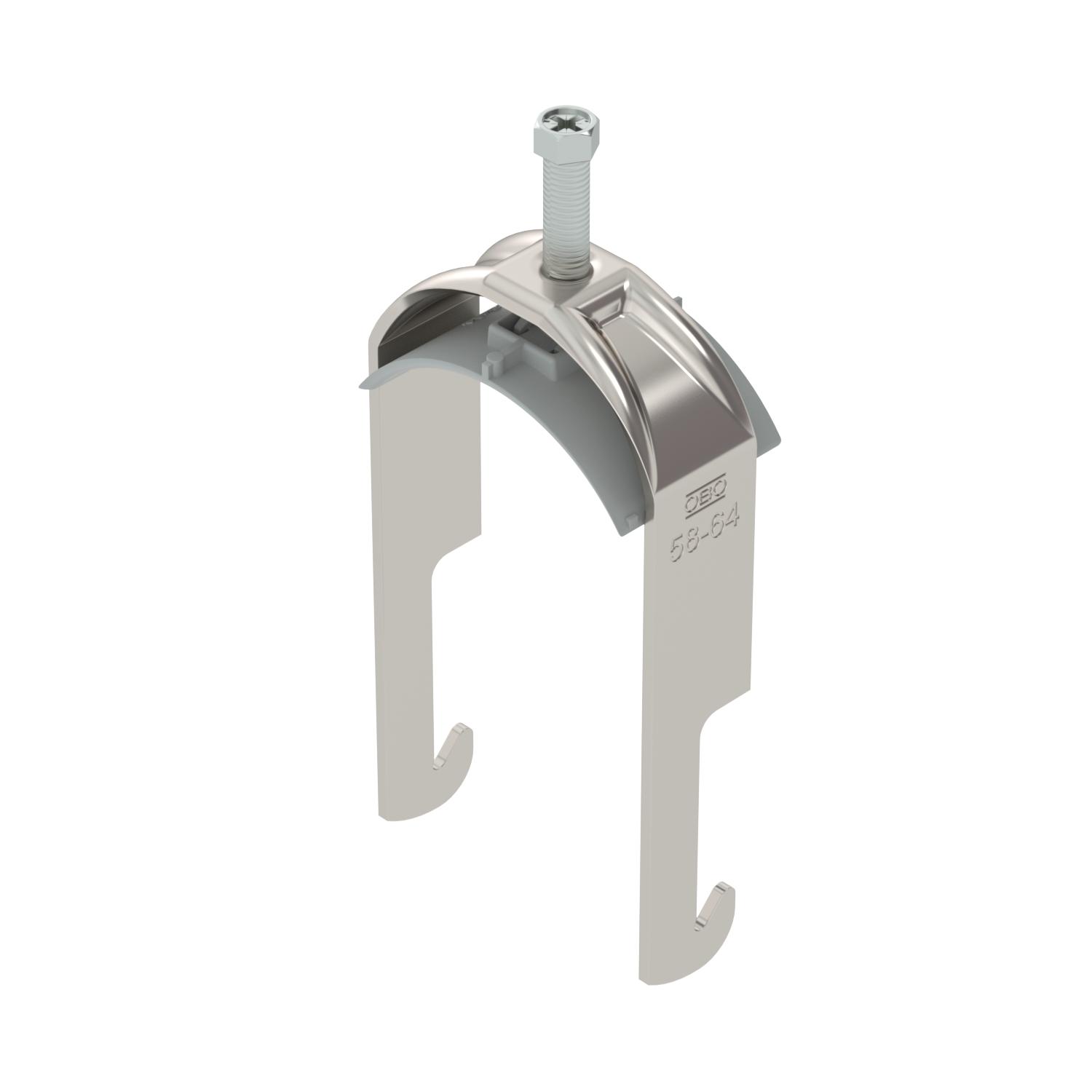 Clamping range D, max. 64 mm Clamping range D, min. 58 mm CO2 Footprint (GWP) Cradle-to-Gate 0,844 kg CO2e / 1 Piece Dimension 58-64mm Dimension A 25 mm Dimension B 70 mm Dimension C 40 mm Dimension G (mm) M8 Dimension H 134 mm Dimension L 45 mm Dimension t 2,5 mm For pipe diameter, max. 64 mm For pipe diameter, min. 58 mm Halogen-free yes Height 134 mm Length 25 mm Length of external dimensions 40 mm Material Stainless steel 1.4301 Material addition Rustproof steel Material of trough Plastic Material quality of trough Polypropylene Max. Tightening torque 5 Nm Mounting type Angle profile Number of cables/pipes 1 Plate thickness 2,5 mm Slot width 10 mm Surface Bright, treated Surface addition Untreated Thread M8 Width 70 mm With counter-trough no With plastic trough yes - All types
