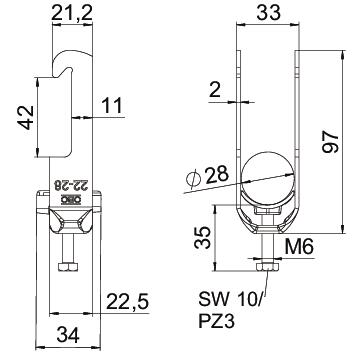 Clamping range D, max. 28 mm Clamping range D, min. 22 mm CO2 Footprint (GWP) Cradle-to-Gate 0,1784 kg CO2e / 1 Piece Dimension 22-28mm Dimension A 22,5 mm Dimension B 33 mm Dimension C 34 mm Dimension G (mm) M6 Dimension H 97 mm Dimension L 35 mm Dimension t 2 mm For pipe diameter, max. 28 mm For pipe diameter, min. 22 mm Halogen-free yes Height 97 mm Length 22,5 mm Length of external dimensions 34 mm Material Steel Material addition Steel Material of trough Plastic Material quality of trough Polypropylene Max. Tightening torque 3 Nm Mounting type Angle profile Number of cables/pipes 1 Plate thickness 2 mm Slot width 10 mm Surface Hot-dip galvanised Surface addition hot galvanised Thread M6 Width 33 mm With counter-trough no With plastic trough yes - All types