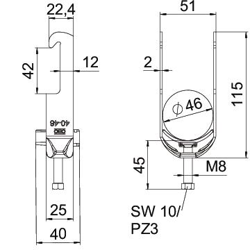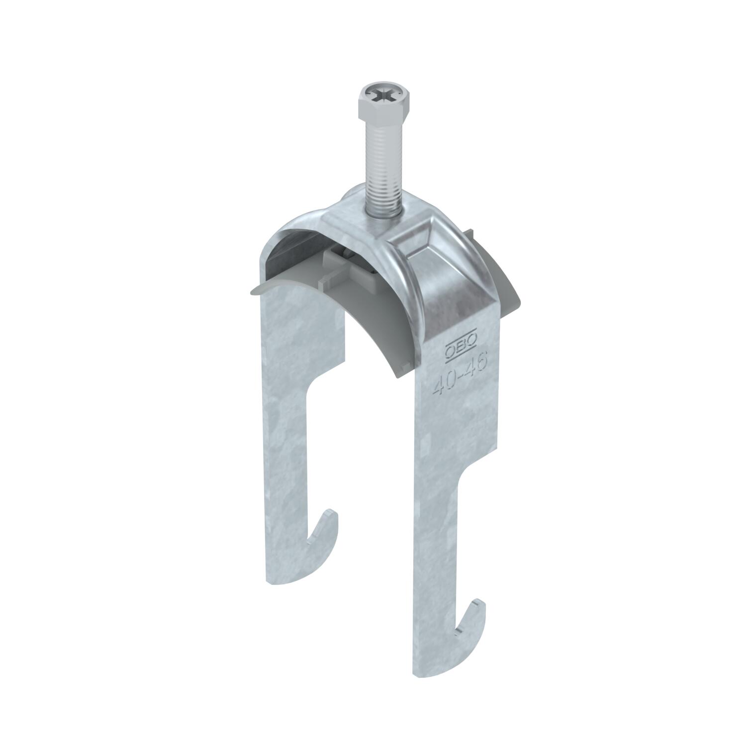 Clamping range D, max. 46 mm Clamping range D, min. 40 mm CO2 Footprint (GWP) Cradle-to-Gate 0,2624 kg CO2e / 1 Piece Dimension 40-46mm Dimension A 25 mm Dimension B 51 mm Dimension C 40 mm Dimension G (mm) M8 Dimension H 115 mm Dimension L 45 mm Dimension t 2 mm For pipe diameter, max. 46 mm For pipe diameter, min. 40 mm Halogen-free yes Height 115 mm Length 25 mm Length of external dimensions 40 mm Material Steel Material addition Steel Material of trough Plastic Material quality of trough Polypropylene Max. Tightening torque 5 Nm Mounting type Angle profile Number of cables/pipes 1 Plate thickness 2 mm Slot width 10 mm Surface Hot-dip galvanised Surface addition hot galvanised Thread M8 Width 51 mm With counter-trough no With plastic trough yes - All types