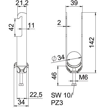 Clamping range D, max. 34 mm Clamping range D, min. 28 mm CO2 Footprint (GWP) Cradle-to-Gate 0,3411 kg CO2e / 1 Piece Dimension 28-34mm Dimension A 22,5 mm Dimension B 39 mm Dimension C 33 mm Dimension G (mm) M6 Dimension H 142 mm Dimension L 46 mm Dimension t 2 mm For pipe diameter, max. 34 mm For pipe diameter, min. 28 mm Halogen-free yes Height 142 mm Length 22,5 mm Length of external dimensions 33 mm Material Steel Material addition Steel Max. Tightening torque 3 Nm Mounting type Angle profile Number of cables/pipes 2 Plate thickness 2 mm Slot width 10 mm Surface Hot-dip galvanised Surface addition hot galvanised Thread M6 Width 39 mm With metal trough yes - All types