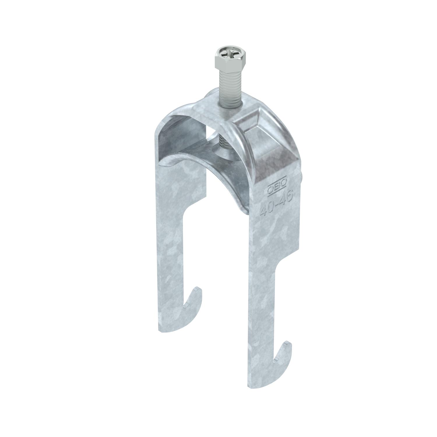 Clamping range D, max. 46 mm Clamping range D, min. 40 mm CO2 Footprint (GWP) Cradle-to-Gate 0,2937 kg CO2e / 1 Piece Dimension 40-46mm Dimension A 25 mm Dimension B 51 mm Dimension C 33 mm Dimension G (mm) M8 Dimension H 115 mm Dimension L 43 mm Dimension t 2 mm For pipe diameter, max. 46 mm For pipe diameter, min. 40 mm Halogen-free yes Height 115 mm Length 25 mm Length of external dimensions 33 mm Material Steel Material addition Steel Max. Tightening torque 5 Nm Mounting type Angle profile Number of cables/pipes 1 Plate thickness 2 mm Slot width 10 mm Surface Hot-dip galvanised Surface addition hot galvanised Thread M8 Width 51 mm With metal trough yes - All types