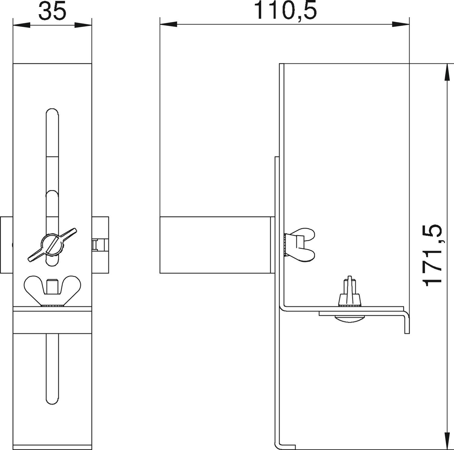 CO2 Footprint (GWP) Cradle-to-Gate 1,5162 kg CO2e / 1 Piece Colour zinc Fastening type Clamp Halogen-free yes Height 35 mm Length 111 mm Material Steel Surface Strip galvanized Width 172 mm - All types