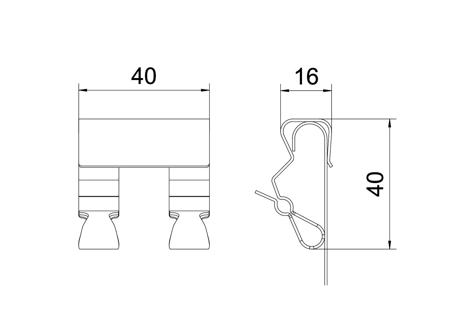 Accessories yes Colour zinc Cross-section 35 mm² Dimension 10-35mm² Height 40 mm Length 40 mm Material Steel Material thickness 0,8 mm Spare part no Suitable for Round conductor Surface Electrogalvanized Type of accessory Miscellaneous Width 16 mm - All types
