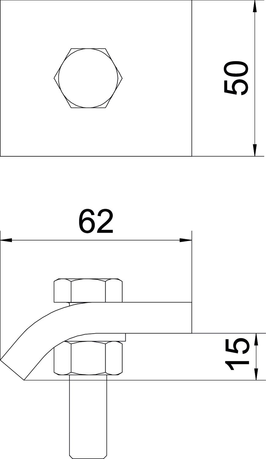 Product descriptionClamping angle, with hexagonal bolt, type KWS, for direct fixing of constructions to steel girder flanges.