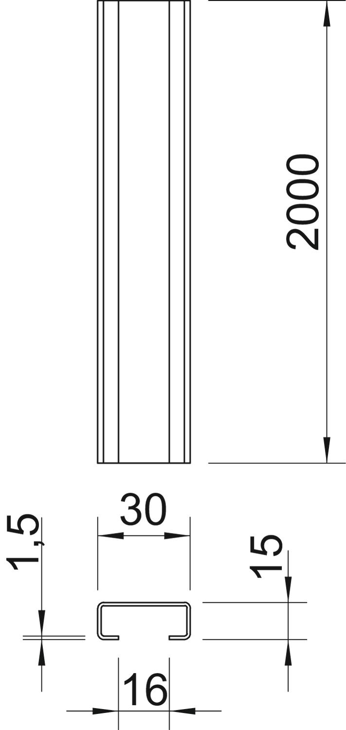 Product descriptionProfile rail, unperforated, slot width 16 mm, 2,000 x 30 x 15