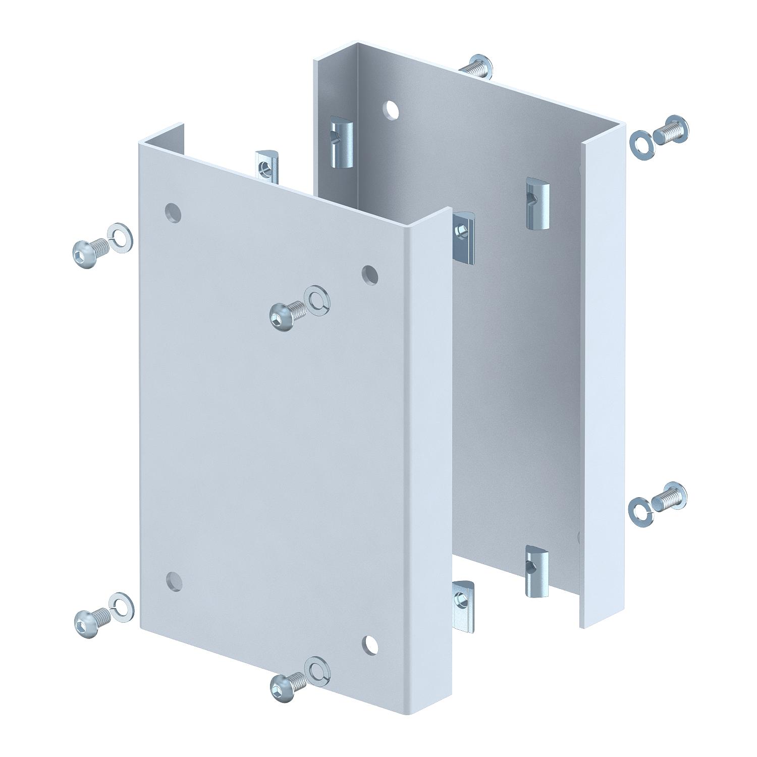 Product descriptionCollision guard as mechanical protection of the ISS industrial pole in the bottom area. The scope of delivery comprises of two U-shaped protection profiles made from 3 mm sheet steel and eight fastening screws with slot nuts to install on the pole profile.