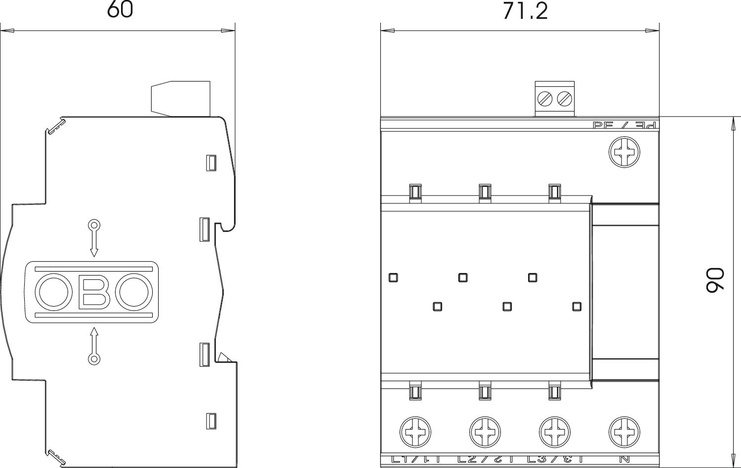 Arrester surge current (8/20 µs) [total] 50 kA Blow-out no CO2 Footprint (GWP) Cradle-to-Gate 1,4712 kg CO2e / 1 Piece Conductor cross-section, rigid (single-wire/multiwire), max. 35 mm² Conductor cross-section, rigid (single-wire/multiwire), min. 2,5 mm² DC network form no Dimension 3+NPE+FS Installation type DIN rail 35 mm Integrated back-up fuse no IT network form no Lightning protection zone LPZ 0→2 Lightning surge current (10/350) 50 kA Max. mains-side overcurrent protection 125 Maximum back-up fuse 125 A Maximum continuous voltage (N-PE) 255 V Maximum continuous voltage AC 280 V Maximum discharge current (8/20 μs) 50 kA Network form Other Nominal discharge current (8/20 µs) [N-PE] 50 kA Nominal voltage AC (50/60 Hz) 230 V Operating temperature, max. 80 °C Operating temperature, min. -40 °C Other network form no Permitted temperature range, max. 80 °C Permitted temperature range, min. -40 °C Pole number 3 Pole version 3+N/PE Protection level [L-N] ≤1,3 Protection rating IP20 Remote signalling yes Response time <25 ns Signalling on device Visual SPD to EN 61643-11 Type 1+2 SPD to IEC 61643-1 Class I+II TN network form yes TN-C network form yes TN-C-S network form yes TN-S network form yes TT network form yes Version for 3+NPE + FS - All types