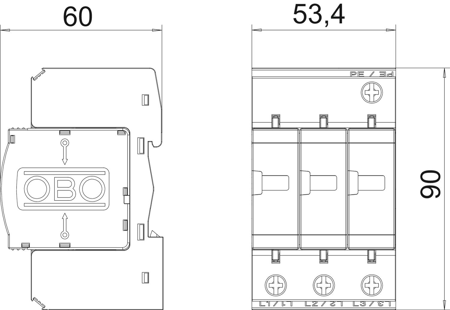 Arrester surge current (8/20 µs) [total] 90 kA Blow-out no CO2 Footprint (GWP) Cradle-to-Gate 1,2614 kg CO2e / 1 Piece Conductor cross-section, rigid (single-wire/multiwire), max. 35 mm² Conductor cross-section, rigid (single-wire/multiwire), min. 2,5 mm² Dimension 280V Lightning protection zone LPZ 0→2 Lightning surge current (10/350 μs) 7 kA Lightning surge current (10/350) 21 kA Max. mains-side overcurrent protection 160 Maximum back-up fuse 160 A Maximum continuous voltage AC 280 V Maximum continuous voltage DC 200 V Maximum discharge current (8/20 μs) 50 kA Network form Other Nominal discharge current (8/20 µs) 30 kA Nominal discharge current (8/20 µs) [L-N] 30 kA Nominal discharge current (8/20 µs) [N-PE] 30 kA Nominal voltage AC (50/60 Hz) 230 V Operating temperature, max. 80 °C Operating temperature, min. -40 °C Permitted temperature range, max. 80 °C Permitted temperature range, min. -40 °C Pole number 3 Pole version 3 Protection rating IP20 Remote signalling no Response time <25 ns Signalling on device Visual SPD to EN 61643-11 Type 1+2 SPD to IEC 61643-1 Class I+II Test class, type 2 yes TN network form yes TN-C network form yes Version for 3-pole - All types