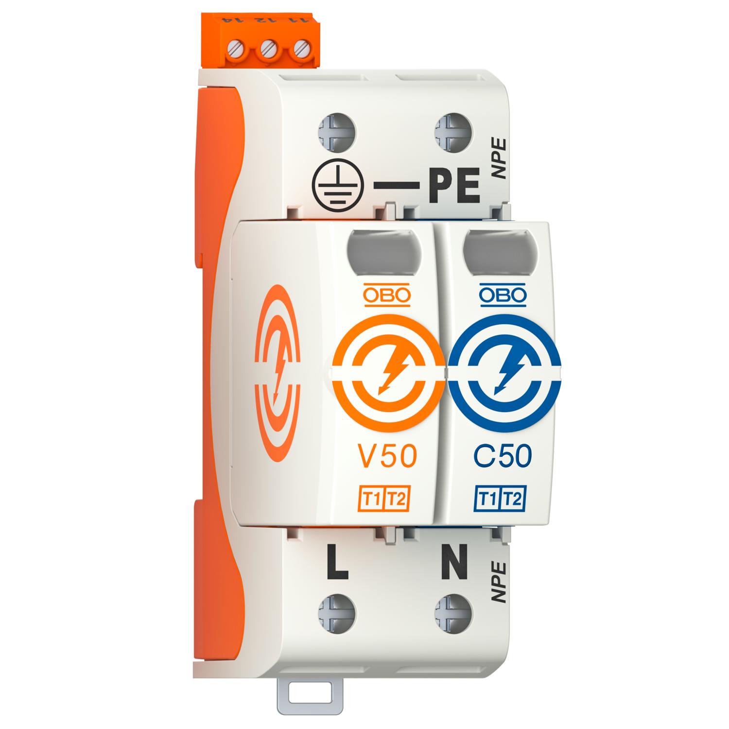 • Lightning current arresting capacity of 12.5 kA (10/350) per pole and up to 50 kA (10/350) in total