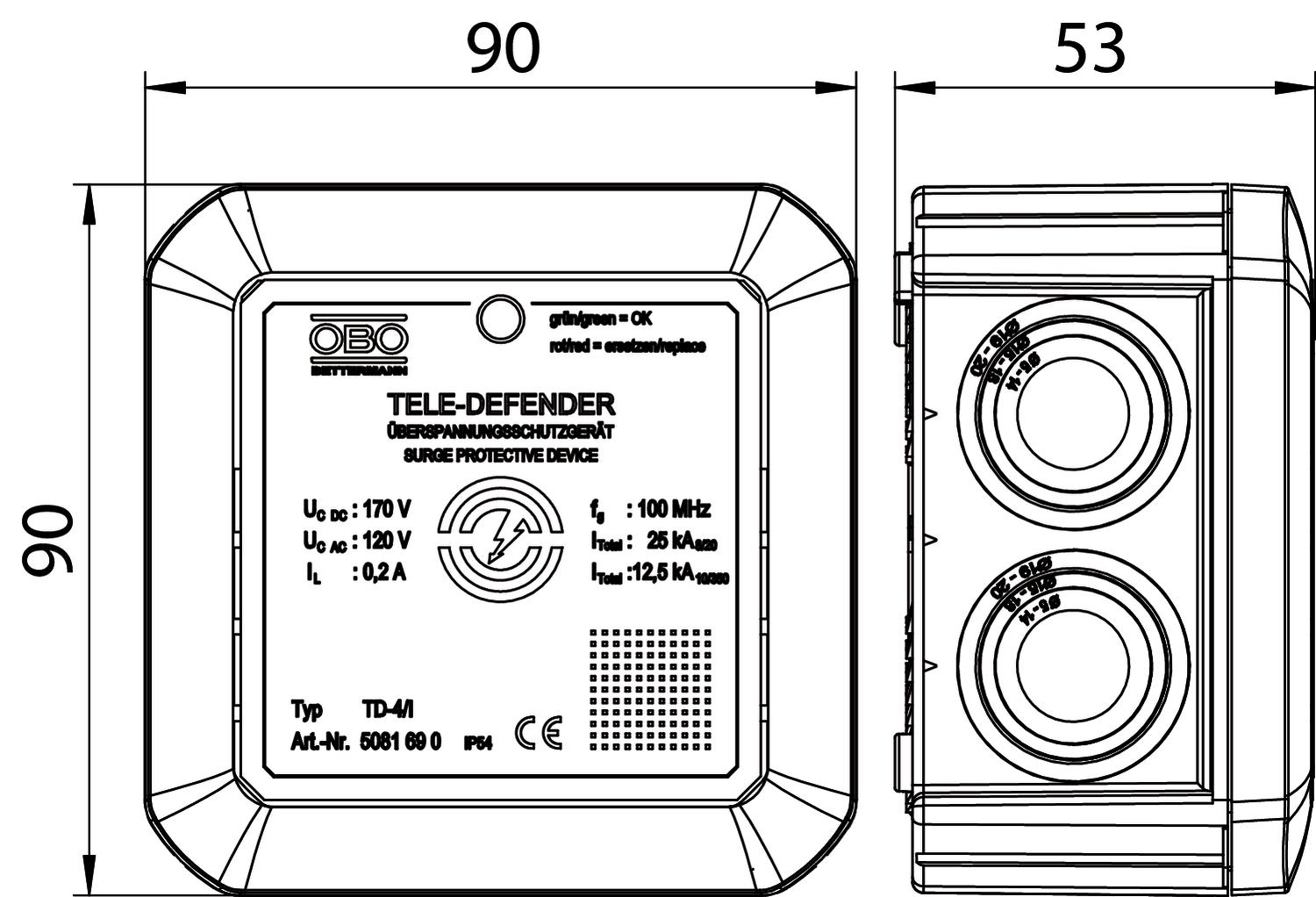 Data sheet TD-4/I / 5081690 , 0.30MB , pdfEU declaration of conformity TD-4/I / 5081690 , 0.11MB , pdfREACH Declaration of conformity TD-4/I / 5081690 , 0.12MB , pdfRoHS Declaration of conformity TD-4/I / 5081690 , 0.12MB , pdfSelection aid Selection aid, surge protection , 2.00MB , pdfMounting instructions Mounting instructions, Tele Defender TD-4/I-TAE-F , 0.10MB , pdf