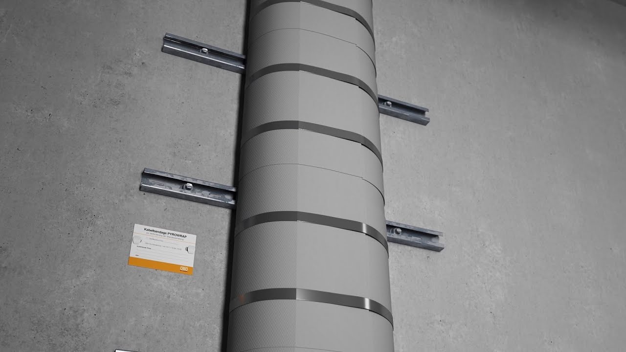 Product descriptionComplete set for covering cable bundles or cable support systems without cover to prevent a fire spreading. Application in outdoor areas. Each of the sets contains 4 sections of the weather-resistant cable bandage PYROWRAP® Wet, 8 metal strip clips and an identification plate. Sufficient for approx. 2 m length.