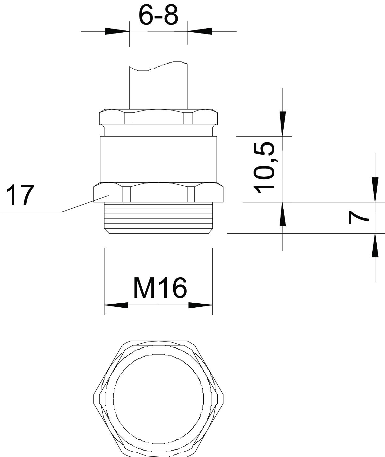 Product descriptionCable gland with hexagonal intermediate connector, shape C4, to DIN 46320 with metric connection thread to DIN EN 60423 and ISO 68. Pressure rings made of electrogalvanised and transparently passivated steel.