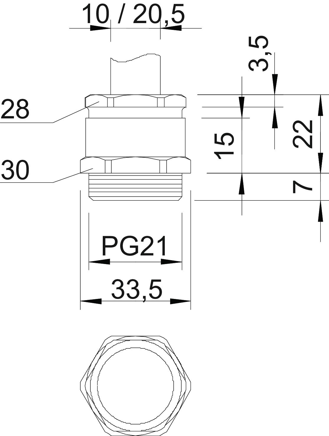 Bend protection no CO2 Footprint (GWP) Cradle-to-Gate 0,1264 kg CO2e / 1 Piece Dimension PG21 Dimension E 33,5 mm Dimension L 22 mm Dimension L max. 22 mm Dimension L1 7 mm Dimension L2 15 mm Dimension L3 3,5 mm explosion-proof no Fibre-glass reinforced no Flat cable gland no For Ex zone Without Halogen-free no Impact-resistant no Material Brass Protection rating IP65 Sealing area D, max. 20,5 mm Sealing area D, min. 10 mm Sealing insert, multiple no Strain relief option no Surface Nickel-plated Thread Pg 21 Thread type PG Type of seal Cuttable sealing ring WAF 1 30 mm WAF 2 28 mm With locknut no - All types