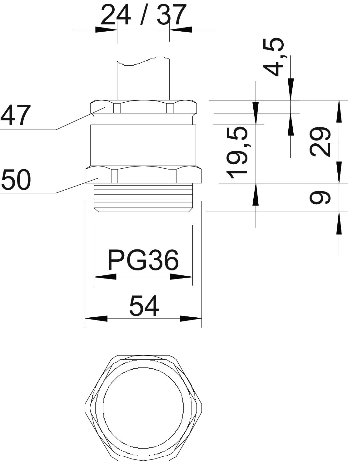Bend protection no CO2 Footprint (GWP) Cradle-to-Gate 0,589 kg CO2e / 1 Piece Dimension PG36 Dimension E 54 mm Dimension L 29 mm Dimension L max. 29 mm Dimension L1 9 mm Dimension L2 19,5 mm Dimension L3 4,5 mm explosion-proof no Fibre-glass reinforced no Flat cable gland no For Ex zone Without Halogen-free no Impact-resistant no Material Brass Protection rating IP54 Sealing area D, max. 37 mm Sealing area D, min. 24 mm Sealing insert, multiple no Strain relief option no Surface Nickel-plated Thread Pg 36 Thread length 9 mm Thread type PG Type of seal Cuttable sealing ring WAF 1 50 mm WAF 2 47 mm With locknut no - All types
