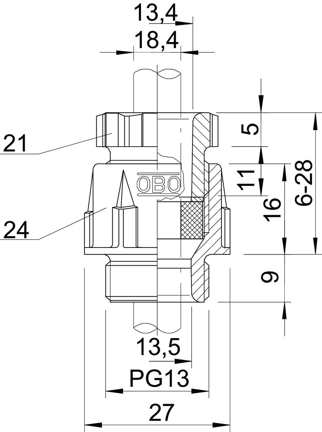Pg connection thread to DIN 40430