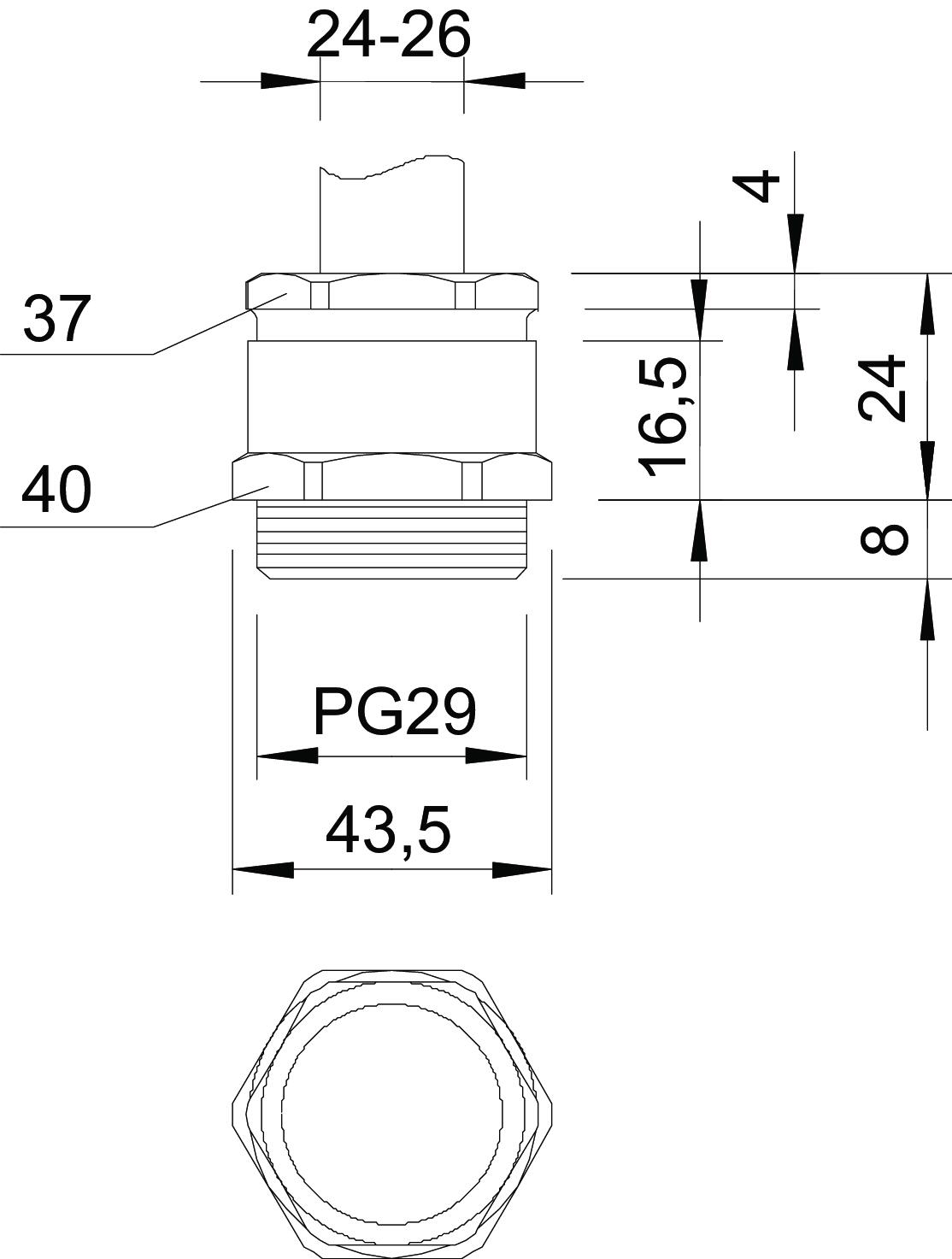 Product descriptionCable gland with hexagonal intermediate connector, shape C4, to DIN 46320 with Pg connection thread to DIN 40430.