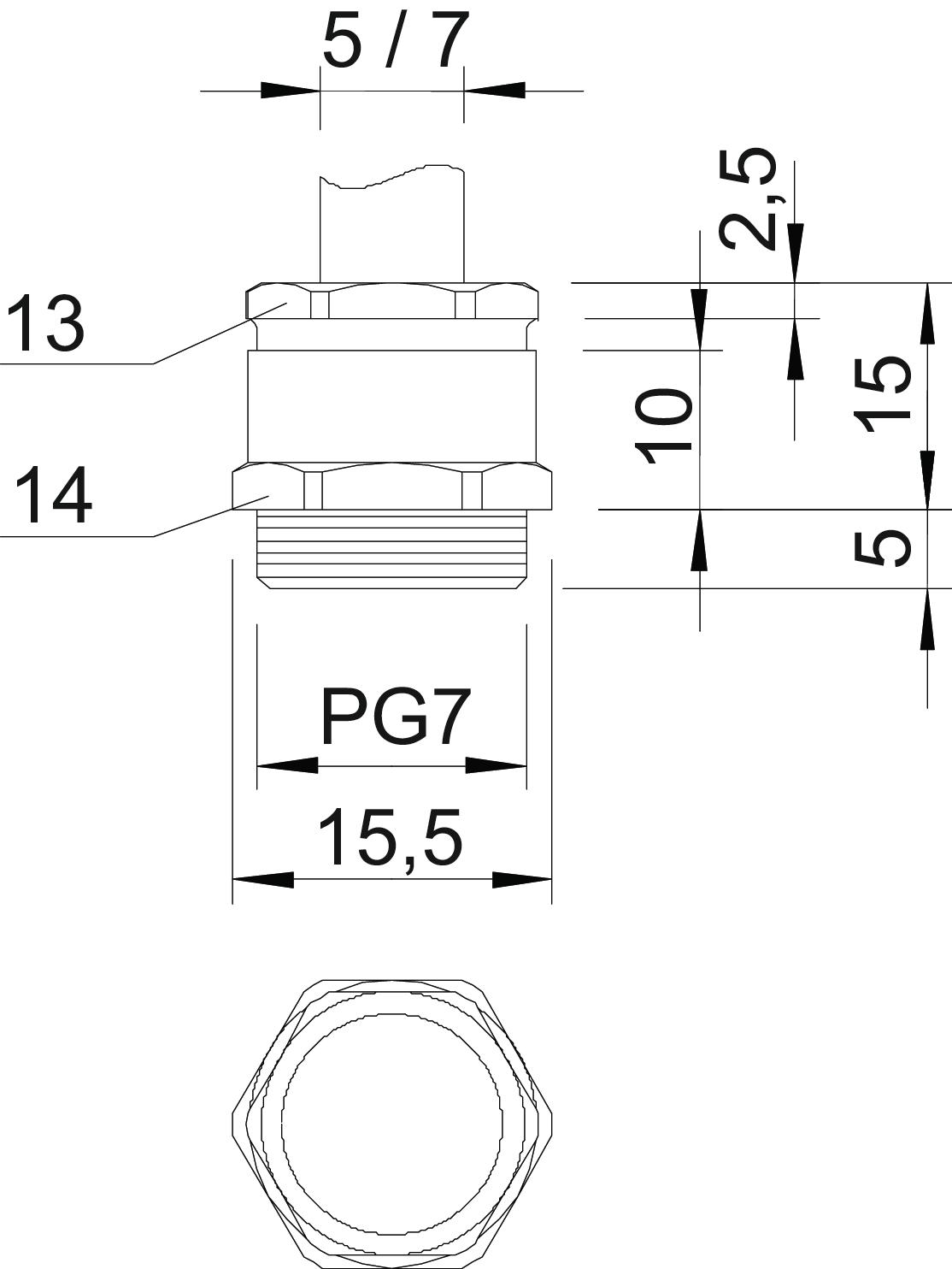 Bend protection no CO2 Footprint (GWP) Cradle-to-Gate 0,0303 kg CO2e / 1 Piece Dimension PG7 Dimension E 15,5 mm Dimension L 15 mm Dimension L max. 15 mm Dimension L1 5 mm Dimension L2 10 mm Dimension L3 2,5 mm explosion-proof no Fibre-glass reinforced no Flat cable gland no For Ex zone Without Halogen-free no Impact-resistant no Material Brass Protection rating IP54 Sealing area D, max. 7 mm Sealing area D, min. 5 mm Sealing insert, multiple no Strain relief option no Surface Nickel-plated Thread Pg 7 Thread length 5 mm Thread type PG Type of seal Sealing ring WAF 1 14 mm WAF 2 13 mm With locknut no - All types