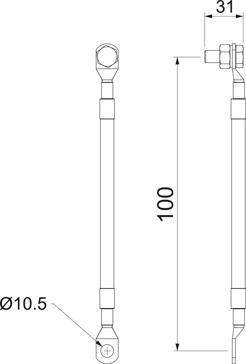 Product descriptionUV-resistant connection cable (copper 25 mm²) for mounting the OBO Ex spark gap, type EX ISG, on insulating flanges and insulating pieces. With cable shoe for M10 bolts on both sides, on one side with M10 bolt, nuts and spring ring.