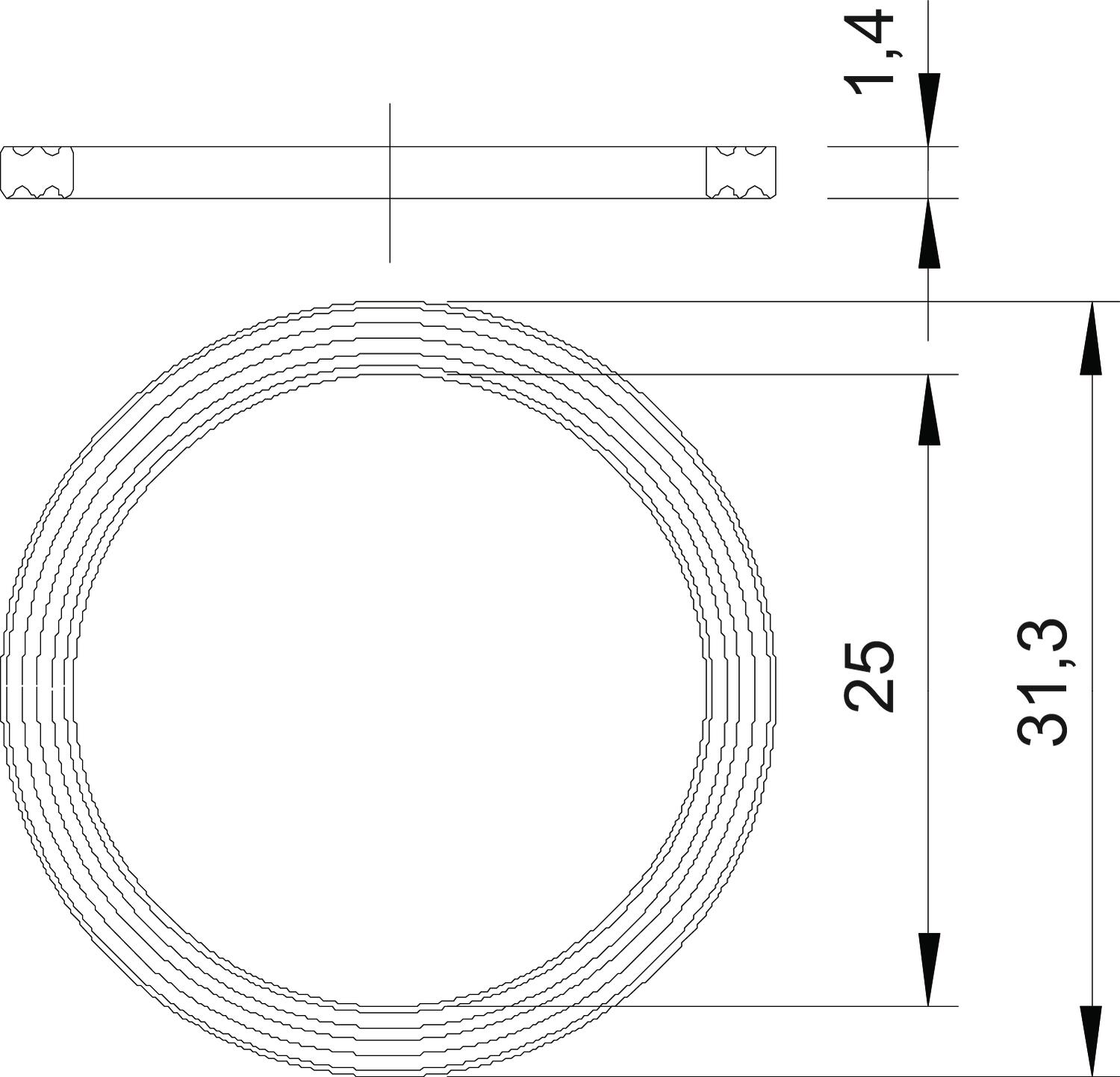 CO2 Footprint (GWP) Cradle-to-Gate 0,0031 kg CO2e / 1 Piece Dimension M25 Dimension D1 31,3 mm Dimension D2 25 mm Dimension t 1,4 mm External diameter 31,3 mm Inner diameter 25 mm Material Polyethylene Suitable for metric thread dimension 25 Thickness 1,4 mm Version for Flat sealing ring - All types