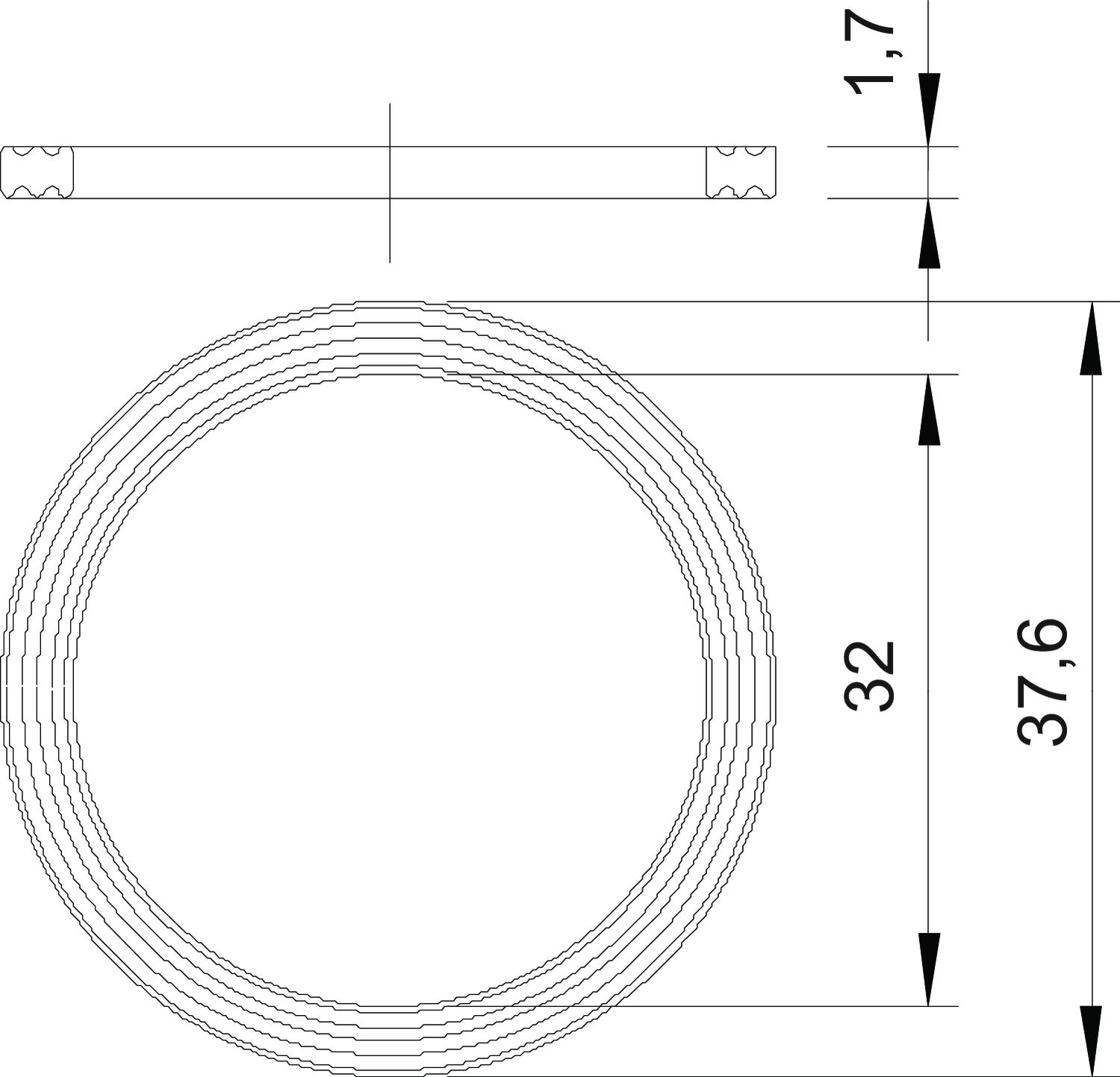 CO2 Footprint (GWP) Cradle-to-Gate 0,0049 kg CO2e / 1 Piece Dimension M32 Dimension D1 37,6 mm Dimension D2 32 mm Dimension t 1,7 mm External diameter 37,6 mm Inner diameter 32 mm Material Polyethylene Suitable for metric thread dimension 32 Thickness 1,7 mm Version for Flat sealing ring - All types