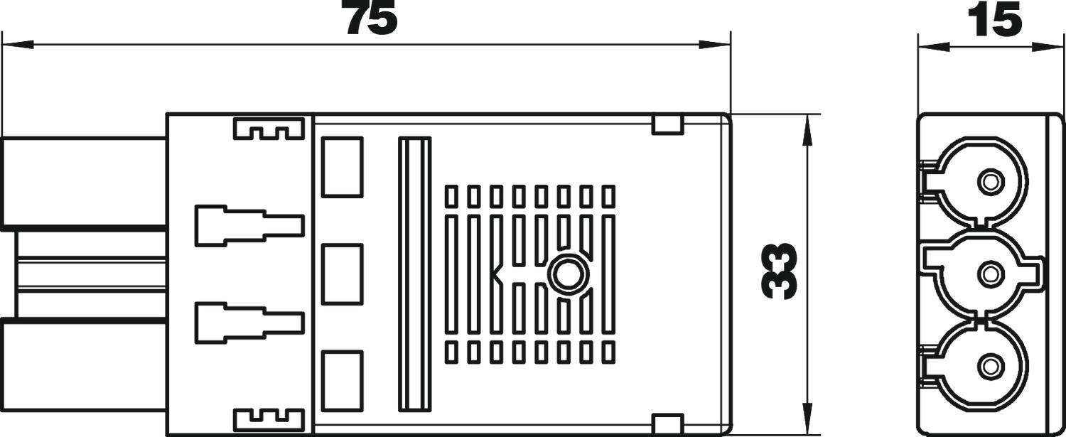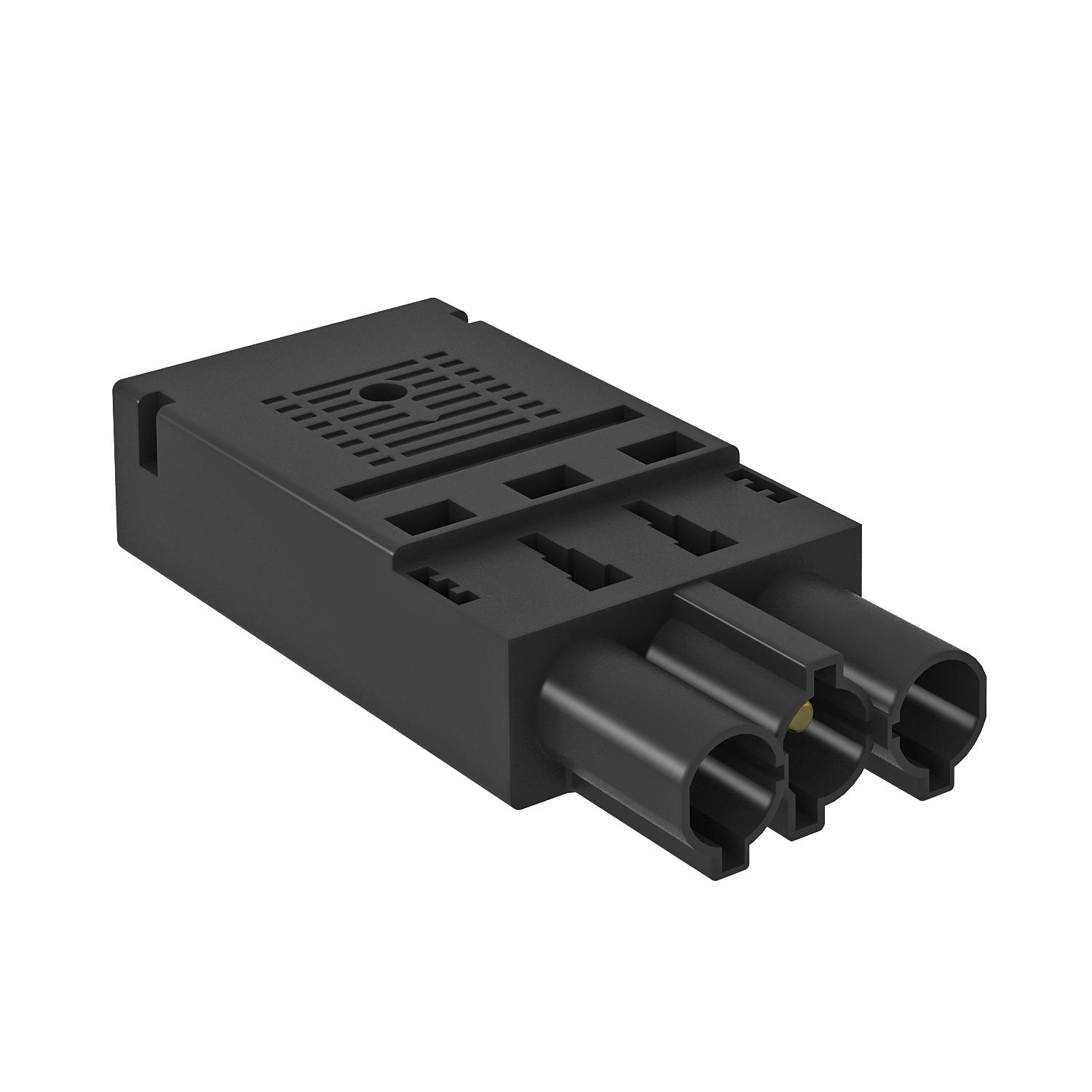 Product descriptionConnector part, 3-pin, type GST18i with spring power connection for rigid cables of 1.5–2.5 mm², single-wire and ultrasonically welded, fine wire cables 1.5 mm² with end sleeves, unmounted with strain relief, can be terminated in situ, 250 V, 16 A.