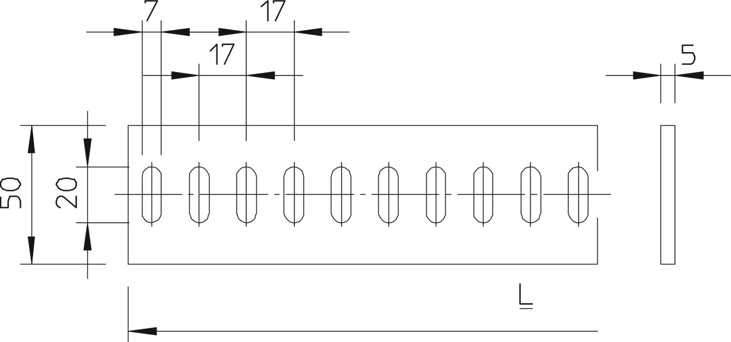 Product descriptionFlat iron profile with slots to create suspensions and support constructions.