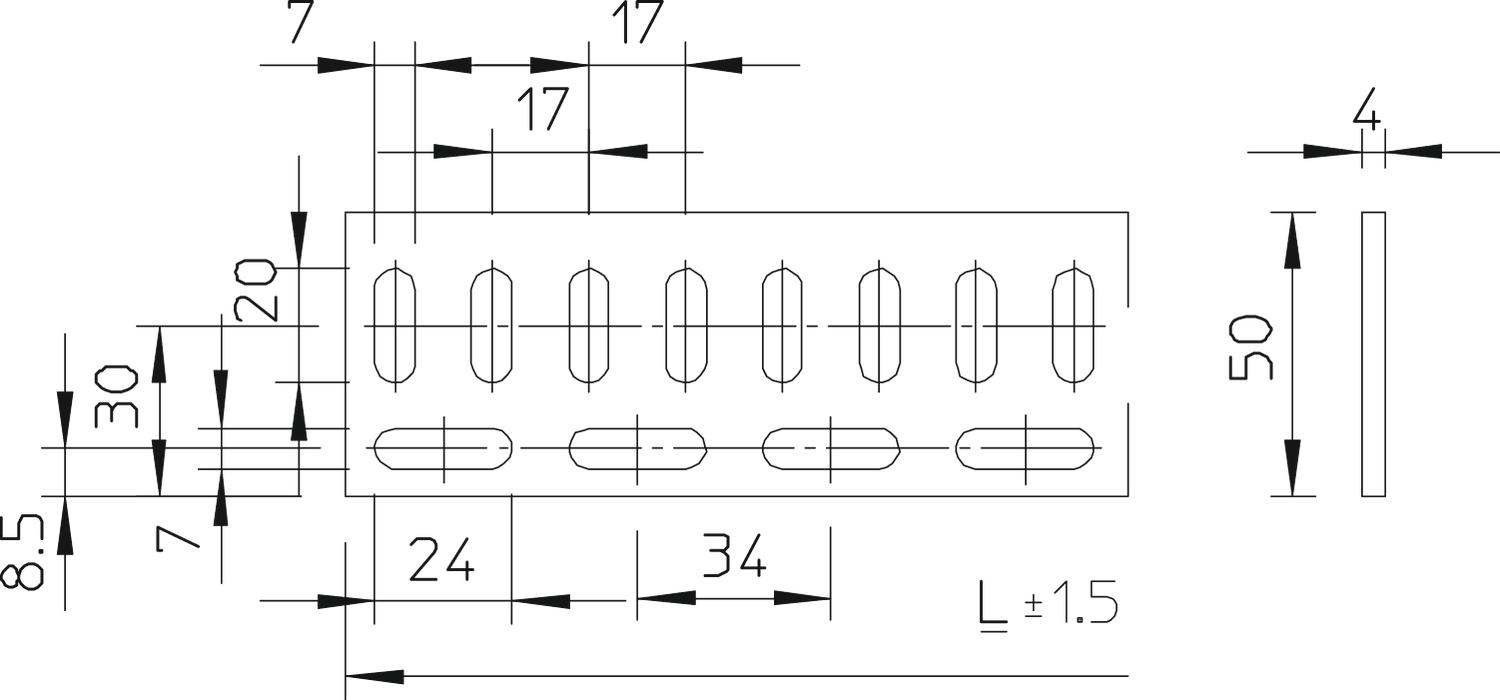 Product descriptionFlat iron profile with transverse and lengthwise slots to create suspended and support constructions.