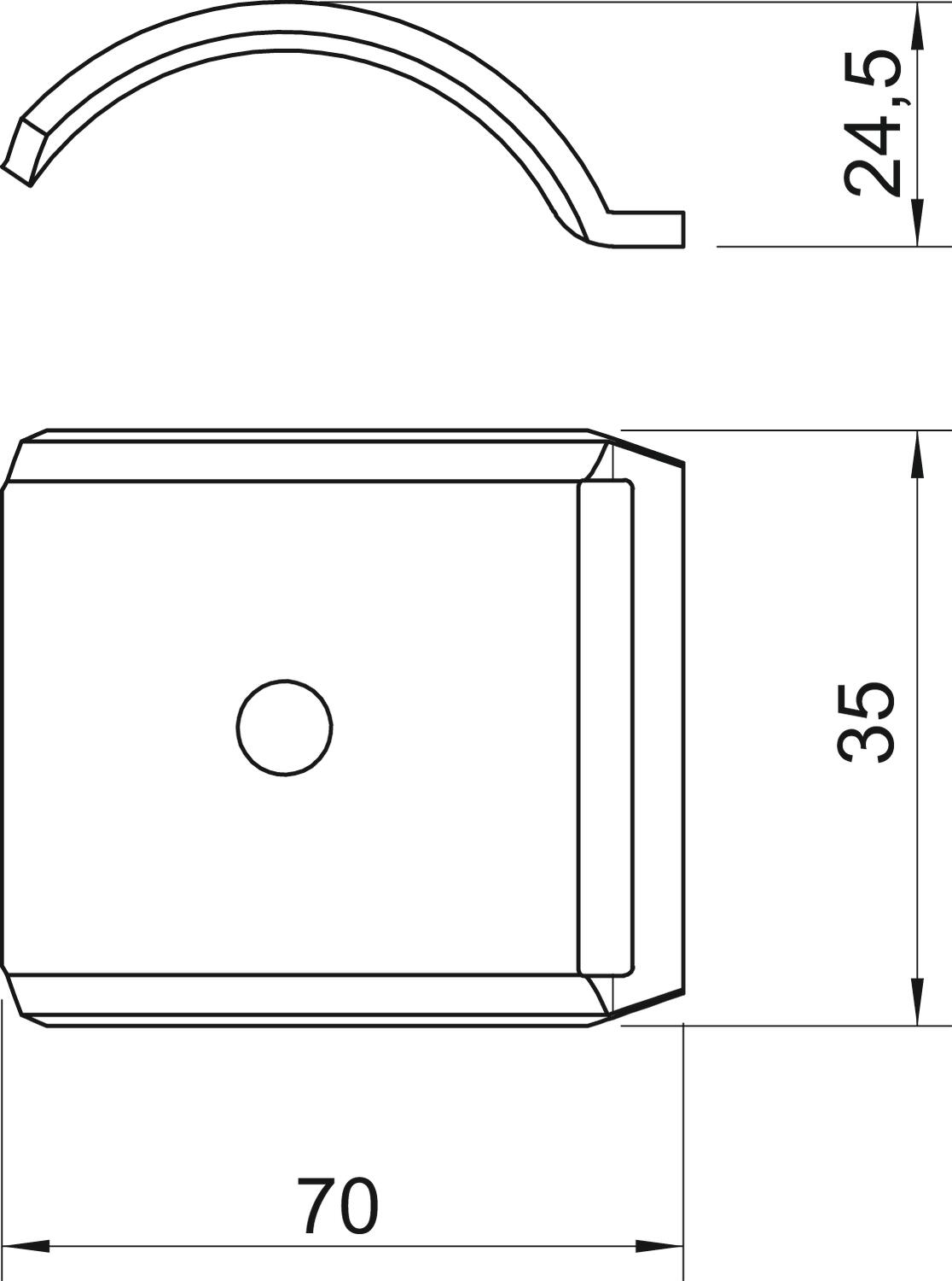 Clamping range D, max. 64 mm Clamping range D, min. 58 mm CO2 Footprint (GWP) Cradle-to-Gate 0,2901 kg CO2e / 1 Piece Counter-trough/clip version Counter sleeve Dimension 58-64mm Dimension B 70 mm Dimension H 24,5 mm Dimension L 35 mm Halogen-free yes Material Stainless steel 1.4301 Suitable for max. cable diameter 64 mm Surface Bright, treated - All types