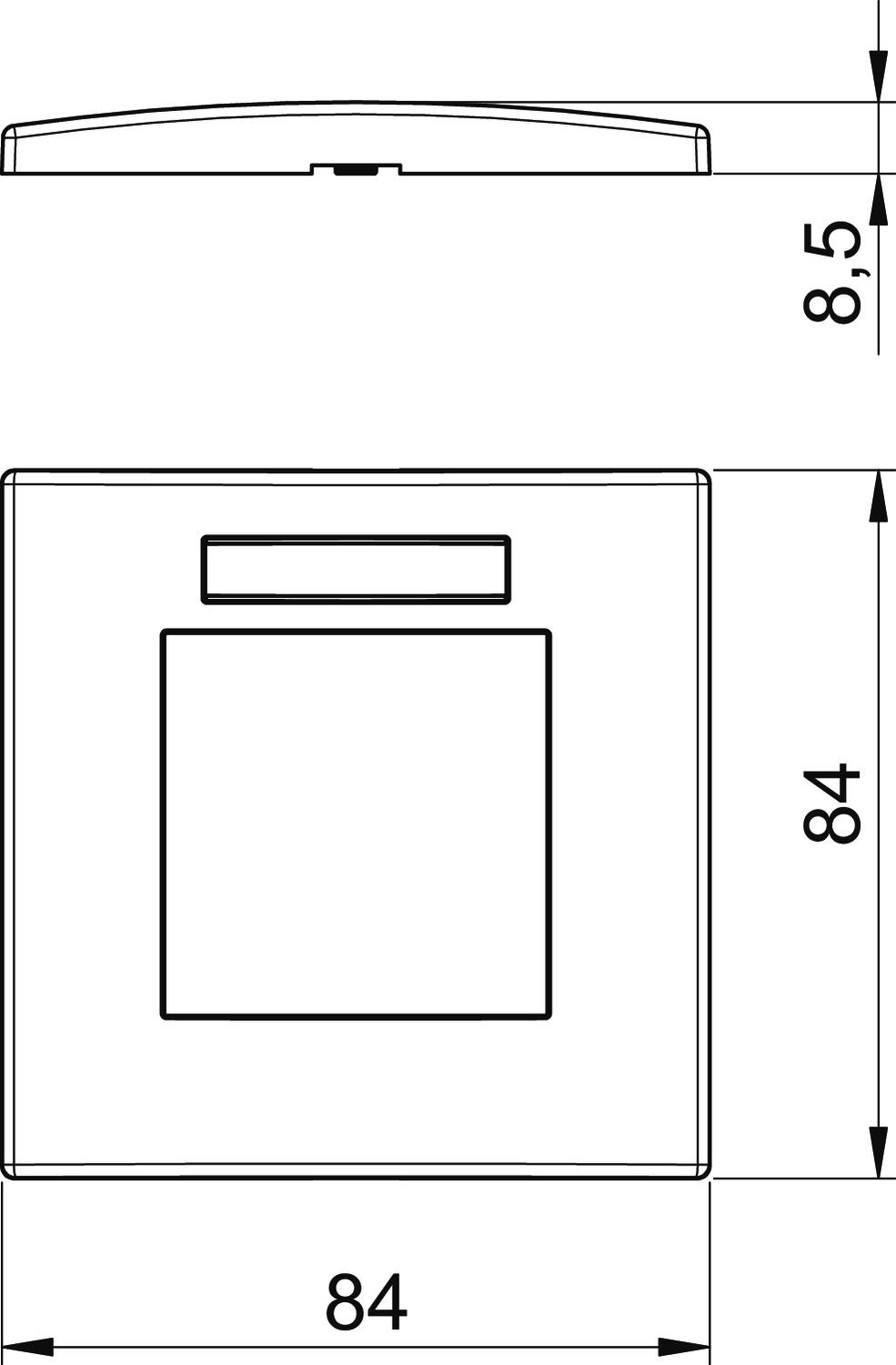 Antibacterial treatment no Anzahl der Einheiten vertikal 1 CO2 Footprint (GWP) Cradle-to-Gate 0,1445 kg CO2e / 1 Piece Colour Pure white; RAL 9010 Depth 8,5 mm Dimension 84x84mm Einbaubreite 45 mm Fastening type Clamp fastening Halogen-free yes Height 84 mm Hinged cover no Installation height 45 mm Material Polycarbonate Mounting direction Vertical Number of units 1 Protection rating Other Suitable for built-in installations yes Suitable for device installation ducts yes Suitable for flush-mounted installations no Suitable for underfloor duct socket no Surface version Matt Text field/inscription field yes Transparent no Width 84 mm With mounting frame no - All types