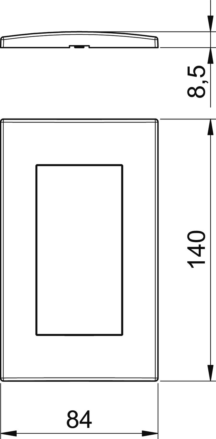 Antibacterial treatment no Anzahl der Einheiten vertikal 2 CO2 Footprint (GWP) Cradle-to-Gate 0,1434 kg CO2e / 1 Piece Colour Black-grey; RAL 7021 Depth 8,5 mm Dimension 84x140mm Einbaubreite 90 mm Fastening type Clamp fastening Halogen-free yes Height 84 mm Hinged cover no Installation height 45 mm Material Polycarbonate Mounting direction Horizontal and vertical Number of units 2 Number of units, horizontal 2 Protection rating Other Suitable for built-in installations yes Suitable for device installation ducts yes Suitable for flush-mounted installations no Suitable for underfloor duct socket no Surface version Matt Text field/inscription field no Transparent no Width 140 mm With mounting frame no - All types