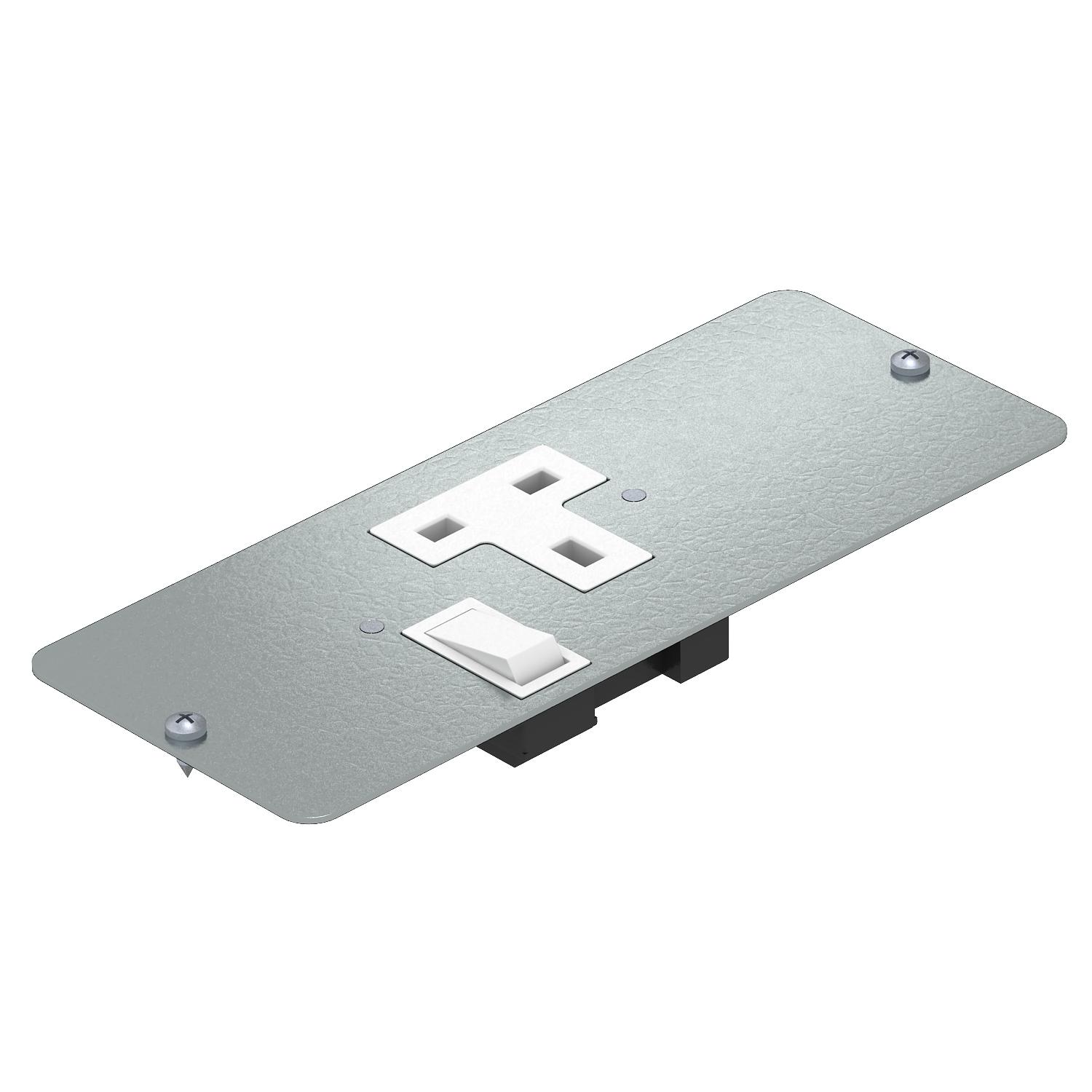 Product descriptionCover plate with a switched single socket for installation in mounting supports beneath GES service outlets and cassettes.