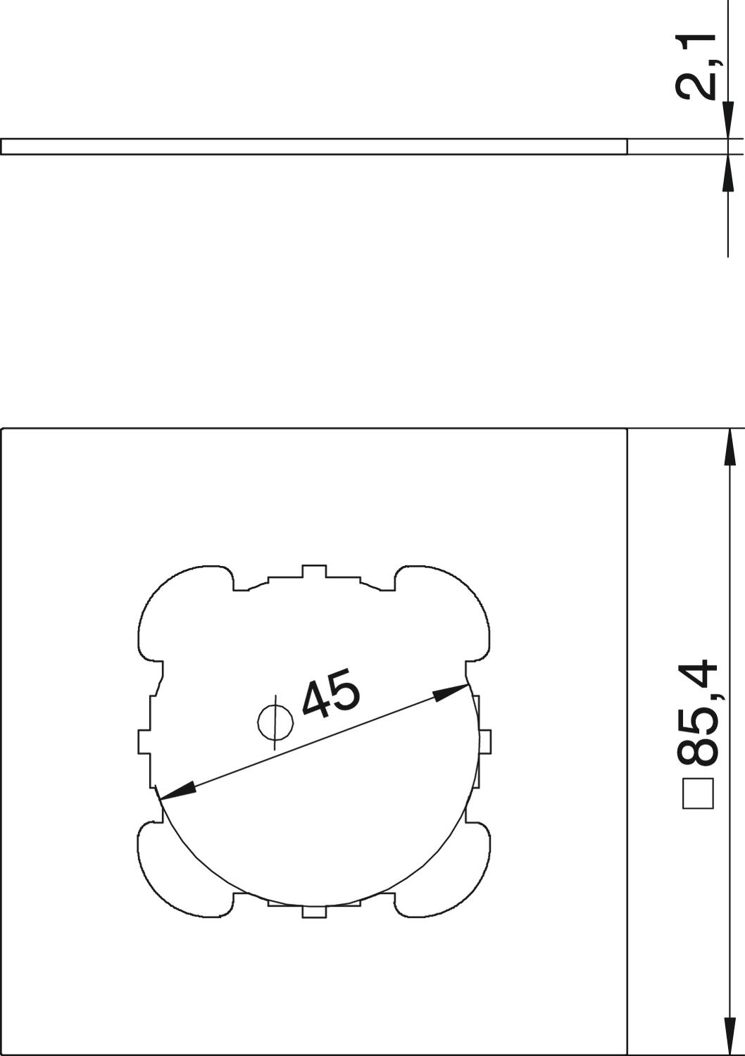 Product descriptionCover plate with 1 perforation (Ø 45 mm) for one accessory with support ring, suitable for T4L and T8NL lengthwise side (1/2 cover).