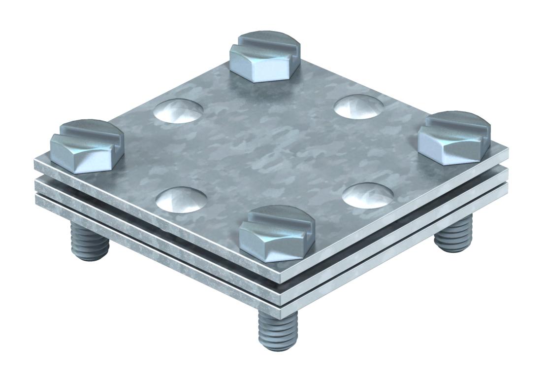 CO2 Footprint (GWP) Cradle-to-Gate 0,3324 kg CO2e / 1 Piece Dimension 30mm Dimension A 52 mm Dimension B 52 mm Dimension L 52 mm Fit max. FL30 mm Intermediate plate yes Lightning current carrying capacity H/100 kA Material Steel Suitable for connection Flat conductor Fl 30 / Fl 30 Surface Hot-dip galvanised Type of connector Cross-connectors Type of fastening screw Hexagonal bolt - All types