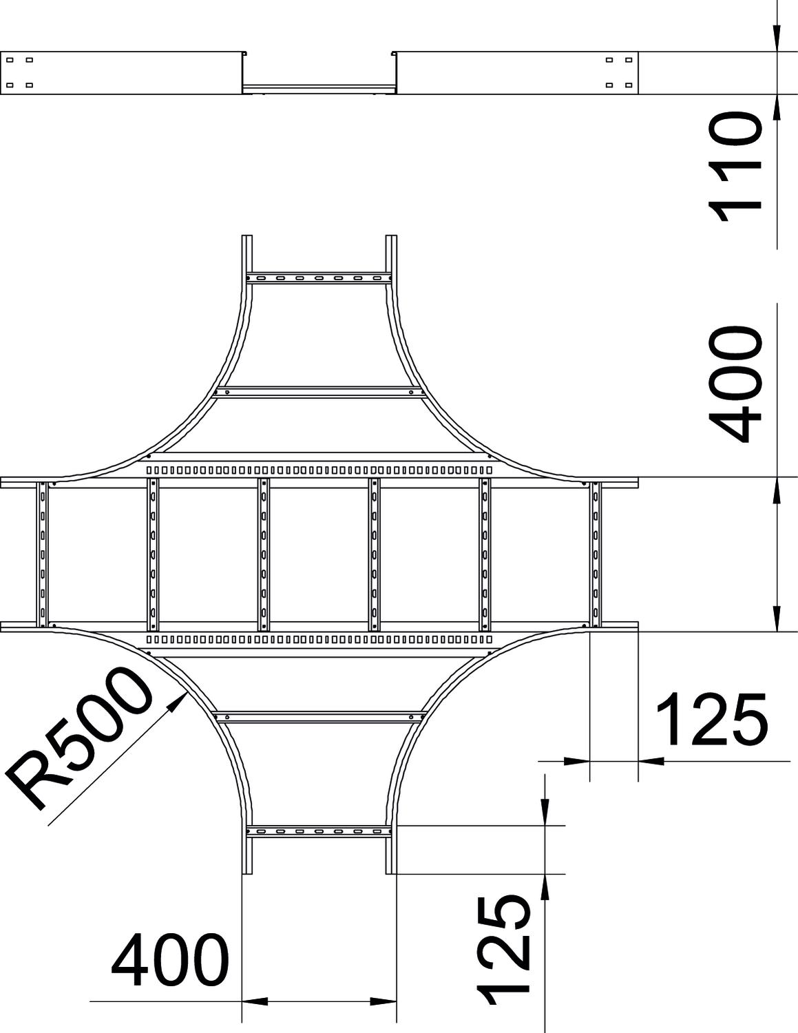 Product descriptionCross-over for the creation of horizontal branches, fitting for cable ladders of side height 110 mm. With connector perforation. Can be used in indoor areas. Connector and fastening material must be ordered separately. Fittings must be supported by the support structure.
