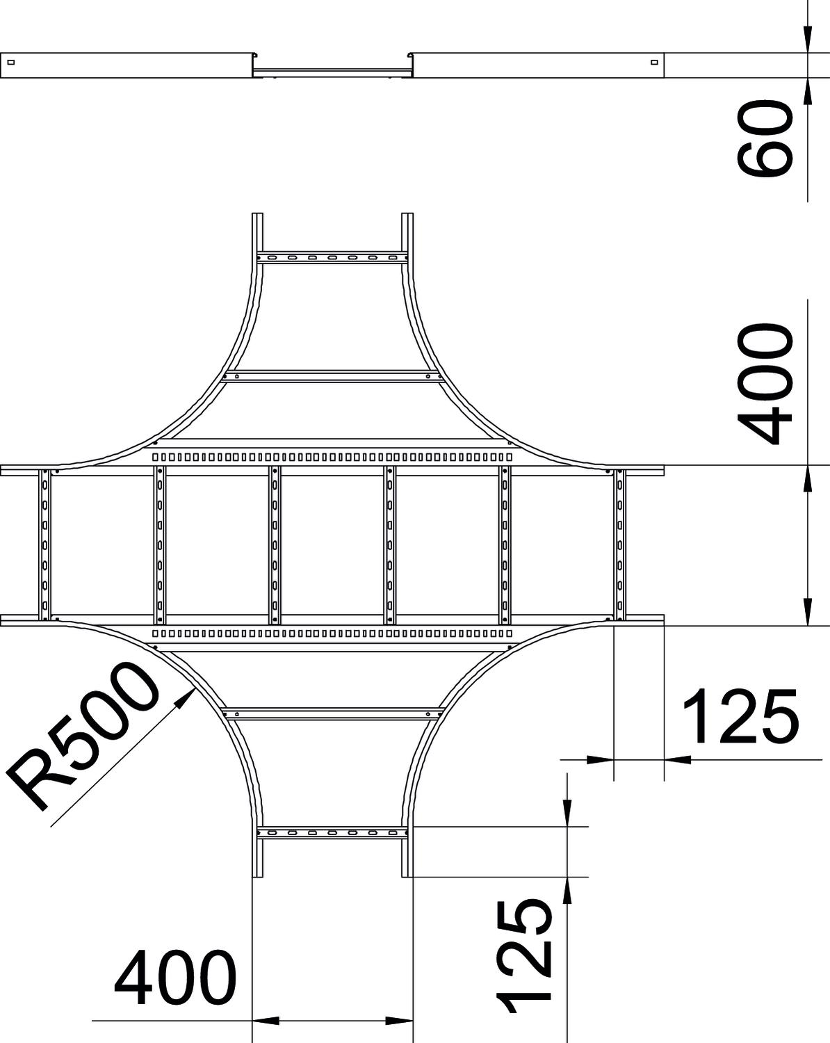 Product descriptionCross-over for the creation of horizontal branches, fitting for cable ladders of side height 60 mm. With connector perforation. Can be used indoors and outdoors. Connector and fastening material must be ordered separately. Fittings must be supported by the support structure.