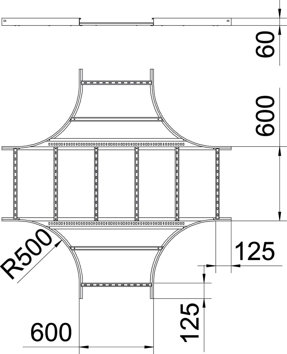 Product descriptionCross-over for the creation of horizontal branches, fitting for cable ladders of side height 60 mm. With connector perforation. Can be used indoors and outdoors. Connector and fastening material must be ordered separately. Fittings must be supported by the support structure.