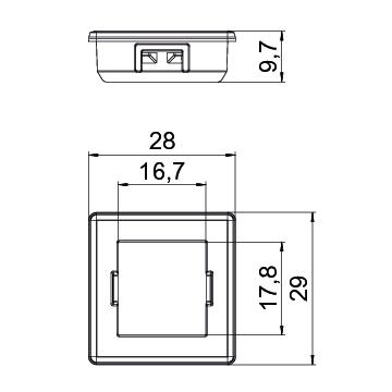 Antibacterial treatment no CO2 Footprint (GWP) Cradle-to-Gate 0,0597 kg CO2e / 1 Piece Colour Light grey; RAL 7035 Combination Miscellaneous Depth 10 mm Dimension 29x28x10 Fastening type Lock Halogen-free yes Height 29 mm Hinged cover no Labelling panel Without labelling panel Lamp-wire connector no Lighting no Material Polycarbonate Mounting opening Type A Mounting type Miscellaneous Outlet direction Straight Protection rating IP20 Strain relief option no Support ring no Surface version Matt Transparent no Use Installable data connector Width 28 mm With dust protection no With printed label no With sockets/couplings no - All types