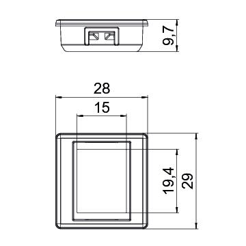 Antibacterial treatment no CO2 Footprint (GWP) Cradle-to-Gate 0,0597 kg CO2e / 1 Piece Colour Light grey; RAL 7035 Combination Miscellaneous Depth 10 mm Dimension 29x28x10 Fastening type Lock Halogen-free yes Height 29 mm Hinged cover no Labelling panel Without labelling panel Lamp-wire connector no Lighting no Material Polycarbonate Mounting opening Type C Mounting type Miscellaneous Outlet direction Straight Protection rating IP20 Strain relief option no Support ring no Surface version Matt Transparent no Use Installable data connector Width 28 mm With dust protection no With printed label no With sockets/couplings no - All types