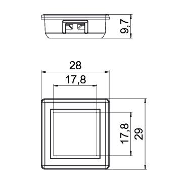 Antibacterial treatment no CO2 Footprint (GWP) Cradle-to-Gate 0,0597 kg CO2e / 1 Piece Colour Light grey; RAL 7035 Combination Miscellaneous Depth 10 mm Dimension 29x28x10 Fastening type Lock Halogen-free yes Height 29 mm Hinged cover no Labelling panel Without labelling panel Lamp-wire connector no Lighting no Material Polycarbonate Mounting opening Type W Mounting type Miscellaneous Outlet direction Straight Protection rating IP20 Strain relief option no Support ring no Surface version Matt Transparent no Use Installable data connector Width 28 mm With dust protection no With printed label no With sockets/couplings no - All types