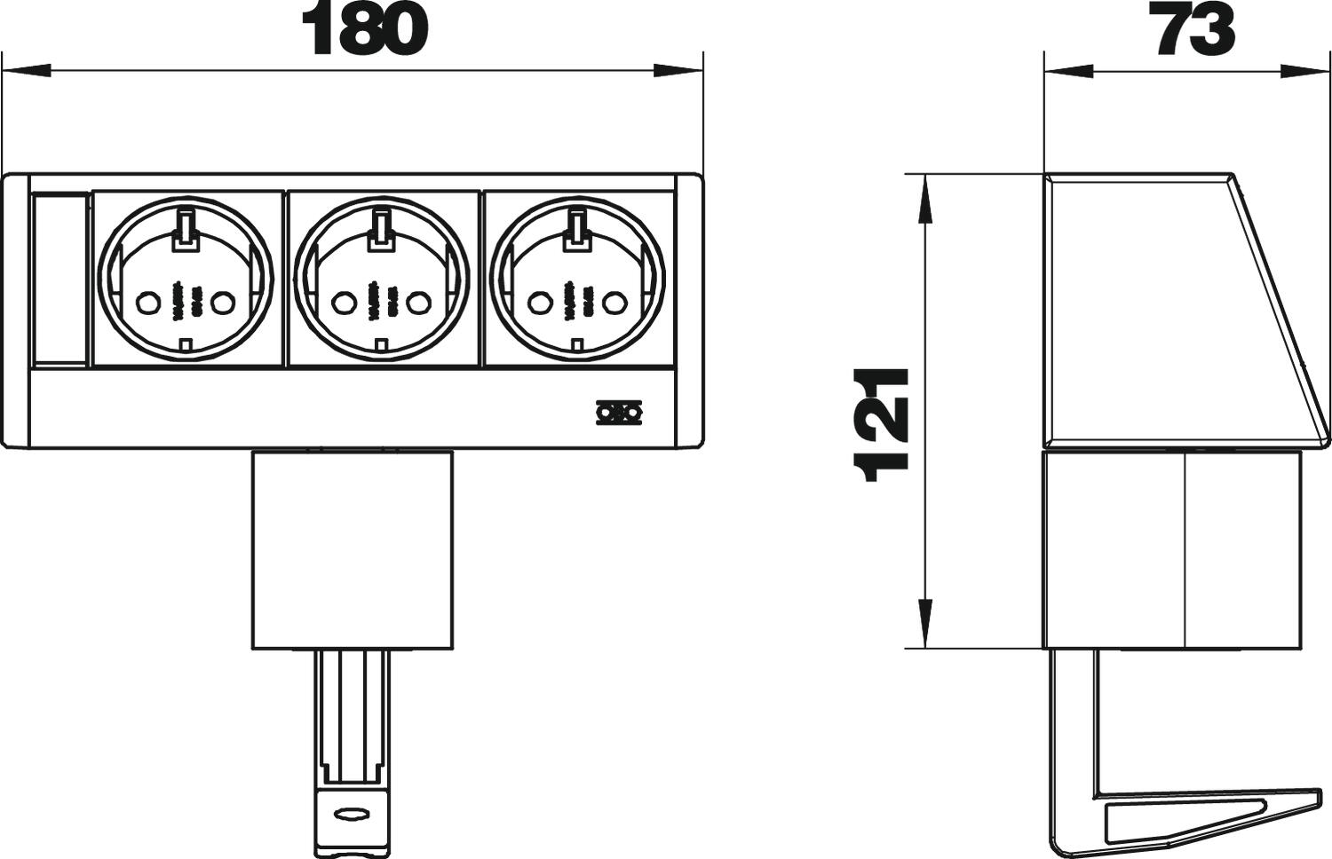 Colour aluminium Extendable no Foldable no Height 121 mm Length 180 mm Length of the supply cable 3 m Material Aluminium Number of SCHUKO sockets 3 Surge protection no Version for Housing, silver anodised - All types