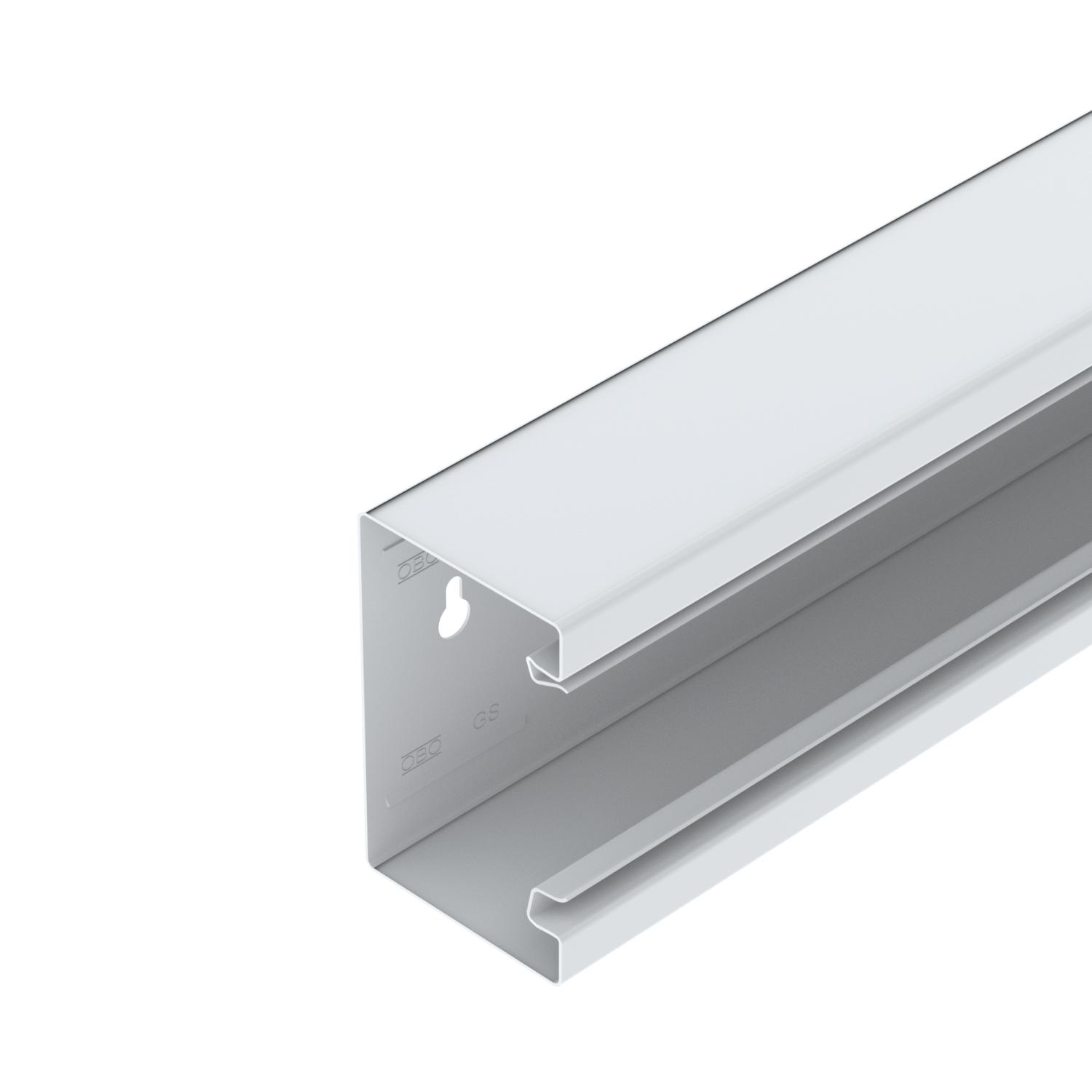 Product descriptionGS device installation trunking for mounting on the wall or on fastening panels. The GS device installation trunking possesses self-contacting locking straps to accept a sheet steel partition. The equipotential bonding between the trunking bases takes place using the trunking coupling. The protective measure and the equipotential bonding is guaranteed between the cover and the base by the self-contacting trunking cover. The real system opening is 76.5 mm. The cover must be ordered separately.
