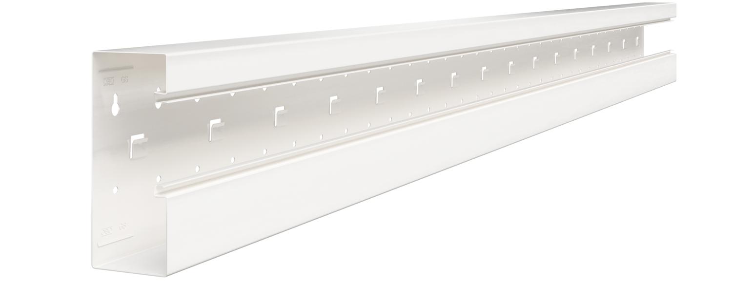 Overlengths up to 3,000 mm for trunking bases and covers as well as other RAL colours can be provided on request. The visible surfaces of the painted device installation trunking are laminated.