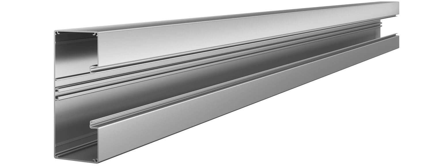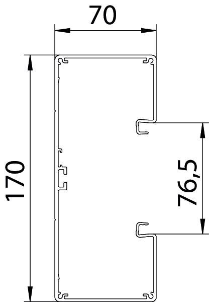 Antibacterial treatment no Base perforation Without base perforation Cable retaining clip no CO2 Footprint (GWP) Cradle-to-Gate 33,8357 kg CO2e / 1 Meter Colour aluminium Cover mounting type Internal Cover supplied no Cover width 76,5 mm Dimension 70x170x2000 Duct connector no Halogen-free yes Height 70 mm Length 2000 mm Material Aluminium Mounting perforation in base no Number of covers 1 Number of insertable partitions 1 Permitted temperature range, max. 60 °C Permitted temperature range, min. -25 °C Protection rating IP30 Protection rating IK code IK10 Protective film yes Rear panel version (inner side) Continuous C profile Rectangular shape yes Surface Anodised Symmetrical yes Usable cross-section 8620 mm² Width 170 mm - All types