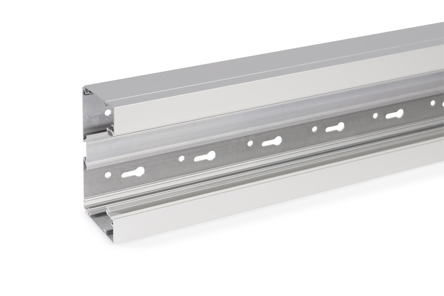 For anodised device installation trunking and fittings made from aluminium, slight colour differences caused by permitted scatter due to the material and process conditions cannot be avoided (according to DIN 17 611). Alternatively, we recommend powder coating in the colour RAL 9006 (white aluminium).