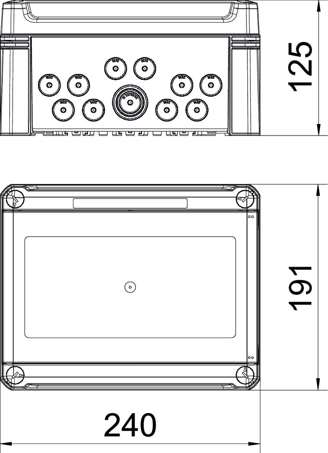 - 8 break-out openings each of Ø 20 mm at the top and bottom